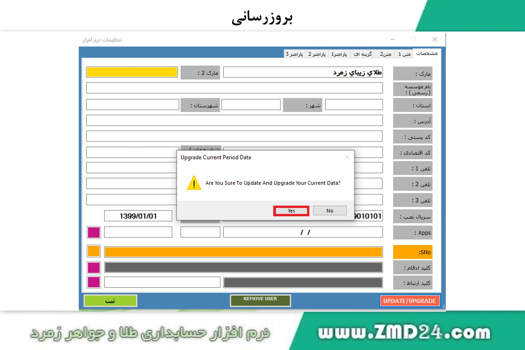نحوه بروزرسانی در برنامه حسابداری طلا زمرد :