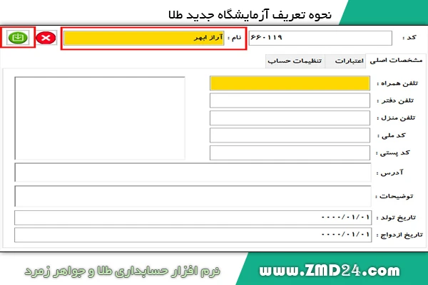 نحوه تعریف نام آزمایشگاه ری گیری به لیست آزمایشگاه های برنامه حسابداری طلا زمرد :