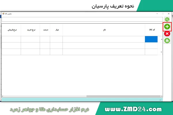 نحوه تعریف سکه پارسیان در برنامه حسابداری طلا زمرد :
