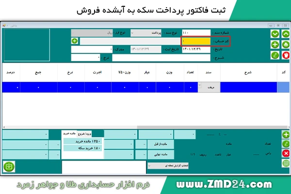 نحوه تعریف پرداخت سکه به آبشده فروش در نرم افزار حسابداری طلا زمرد :