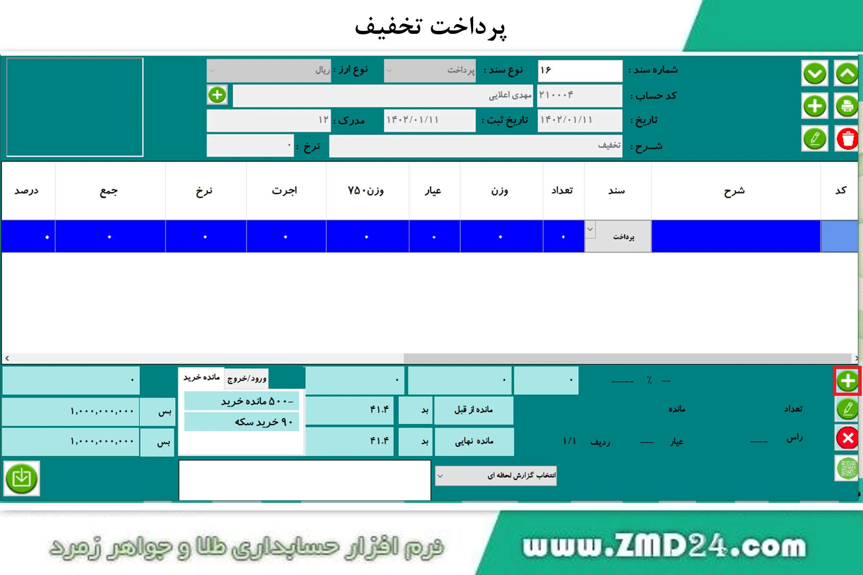 نحوه پرداخت تخفیف در برنامه حسابداری طلا زمرد: