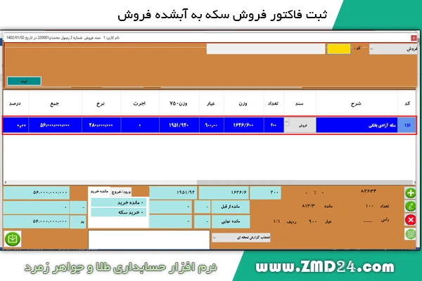 نحوه ثبت فروش سکه به آبشده فروش در نرم افزار حسابداری طلا زمرد