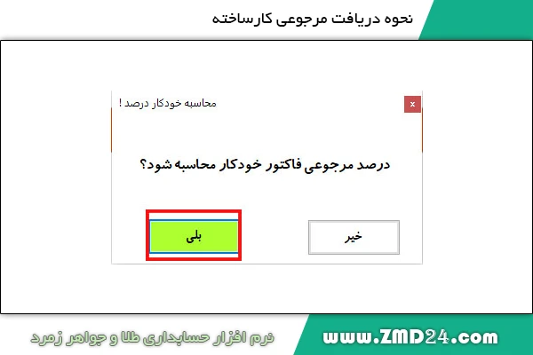 22)پس از کلیک بلی در این پیغام خواهید دید که یک ردیف به نام جمع درصد به فاکتور شما اضافه میشود و این جمع درصد طلایی فاکتور شما خواهد بود و میزان آن به وزن 750 فاکتور شما افزوده میشود ( در شکل نمایش داده شده است ).