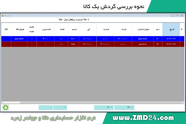 نحوه بررسی گردش کالا در برنامه حسابداری طلا زمرد: