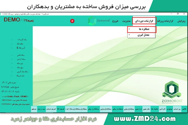 نحوه بررسی میزان فروش ساخته به مشتریان و بدهکاران در برنامه حسابداری طلا زمرد :